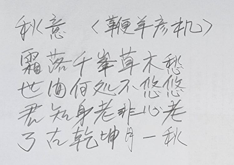 | 내 용 | 秋意 <鞭羊彦機> 추의 <편양언기> 霜落千峯草木愁 상락천봉초목수 世間何處不悠悠 세간하처불유유 君知身老非心老 군지신로비심로 萬古乾坤月一秋 만고건곤월일추 ※편양언기는 서산대사의 마지막 제자이다. |